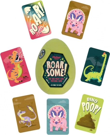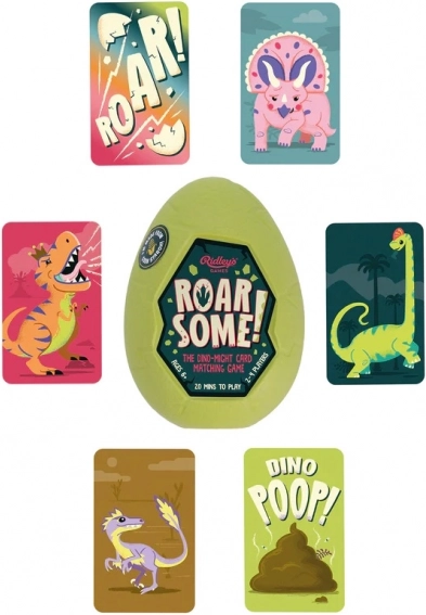 Dit leuke en avontuurlijke spel van Ridley's Games bevat kleurrijke en fantasierijke dinosaurkaarten. Spelers wisselen elkaar af om kaarten te trekken om sets van drie overeenkomsten te maken en zo veel mogelijk Roar Some punten te verzamelen. Het spel bevat ook speciale ROAR-kaarten voor geheime overeenkomsten en DINO POEP voor onverwachte verrassingen!