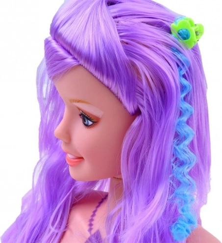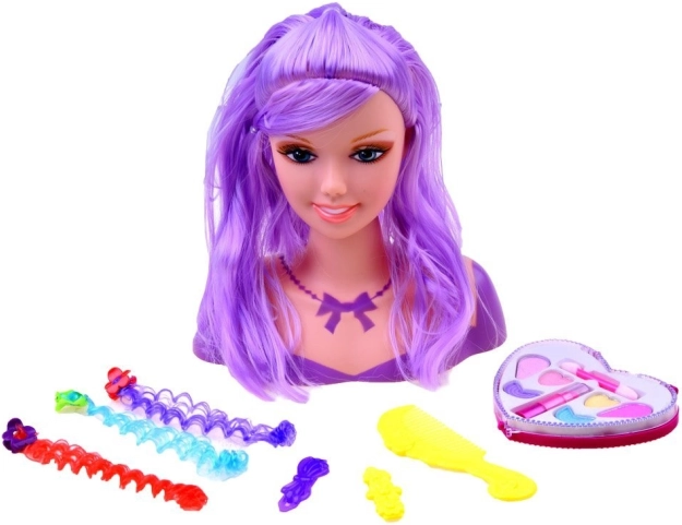 Creëer prachtige kapsels en experimenteer met creatieve styling met deze kapselkop voor kinderen. Inclusief gekleurde haarspelden, gele kam en make-up set.