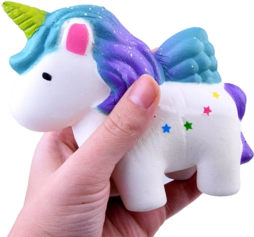 Knijpen in de squishy-eenhoorn helpt spanning te verlagen tijdens het studeren, in de wachtkamer bij de dokter of op een drukke dag.