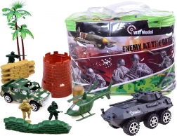 Grote set militair speelgoed voor episch en creatief spel. Bevat een brede selectie tanks, voertuigen, soldaten en andere uitrusting die urenlang plezier en imaginatief spel biedt.