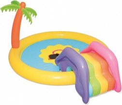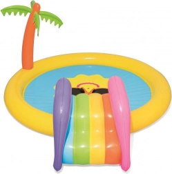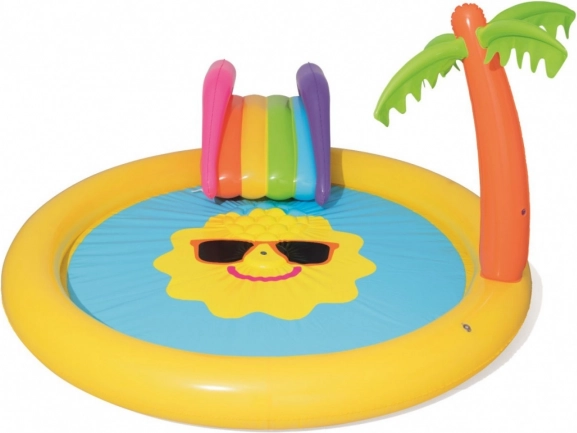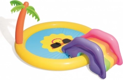 Tover je tuin om tot een mini-waterpark! Het BESTWAY kinderwaterpark met een vrolijke zonnetjesprint nodigt uit tot spetteren en afkoelen op warme dagen. Sluit een tuinslang aan en de ingebouwde sproeier creëert een verfrissende fontein. De afneembare glijbaan in kleurrijk design maakt kleine avonturiers blij, terwijl het zachte en stevige vinyl zorgt voor comfortabel en veilig spelen.
