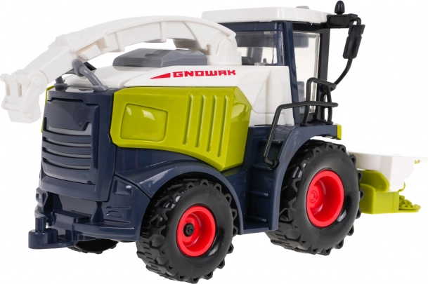 Deze interactieve maaidorser in authentieke landbouwkleuren zal alle techniekliefhebbers verrukken. Het speeltje combineert realistische geluidseffecten (motor, claxon, waarschuwingen) met knipperende LED-lampen op de cabine. Dankzij de wrijvingsaandrijving rijdt hij makkelijk weg en beweegt hij soepel over de vloer.