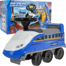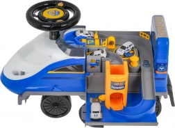 De interactieve rijtrein met politieparkeerplaats is ideaal voor kinderen vanaf 3 jaar. Dit innovatieve rij-speelgoed is vervaardigd van hoogwaardige, niet-giftige kunststof die een lange levensduur en veiligheid voor kinderen waarborgt. De trein is uitgerust met zes wielen, waarvan de twee voorste zwenkbaar zijn. Onder de zitting bevindt zich een uitklapbare politieparkeerplaats met veel bewegende elementen, waaronder glijbanen, een lift en barrières die je naar wens kunt instellen.