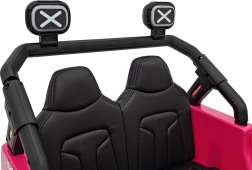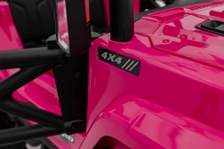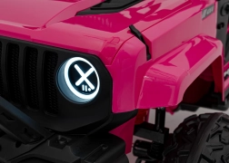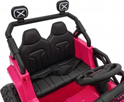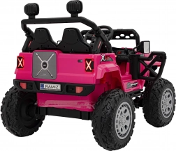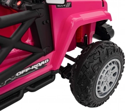 Deze roze auto imiteert een echte off-road voertuig met robuuste constructie en grote, duurzame wielen voor alle terreinen.