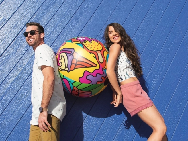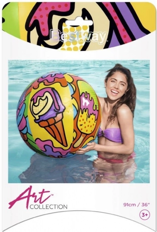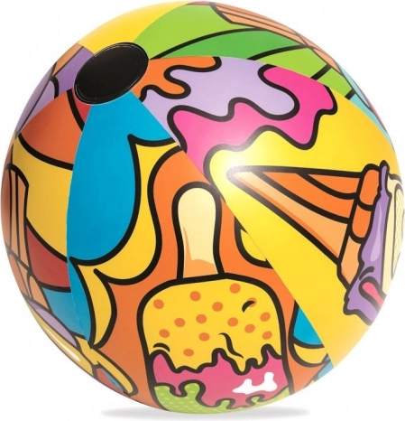 Bal met een diameter van 91 cm biedt zowel kleine als grote mensen veel plezier in de buitenlucht. Het spelen met de bal ontwikkelt bewegingscoördinatie en verbetert motorische vaardigheden, wat alleen maar gezond is. De bal is gemaakt van hoogwaardig vinylmateriaal met zomerse, vrolijke en kleurrijke grafieken die zeker de aandacht van andere recreanten zullen trekken.