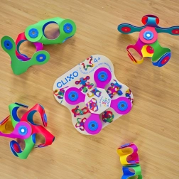 CLIXO Tiny & Mighty is een slimme magnetische bouwset van gepatenteerd synthetisch papier die bijna zonder beperkingen buigt, draait en verbindt. Elk klaverblad-vormig onderdeel koppelt dankzij magneten eenvoudig tot 2D- en 3D-constructies en hecht op elk magnetisch oppervlak. Het compacte formaat en het lage gewicht maken het ideaal voor onderweg.