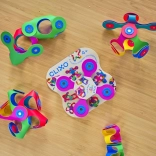 Universele klaverblad-vormige onderdelen verbinden tot vlakke en ruimtelijke modellen. Bouw een brug, armband, balletje of windmolentje en verander vormen in een oogwenk.