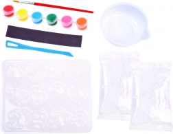 Deze DIY-set geeft kinderen plezier van het maken, van het eerste mengen van het gips tot het eindresultaat bij het schilderen. De mallen omvatten favoriete motieven zoals zon, bloemen, vlinders, regenbogen, ijsjes, cupcakes, beertjes, gieterjes, katten en het woord LOVE. De afgewerkte creaties voorzie je van magnetische tape en ze kunnen de koelkast, een bord of elk metalen oppervlak versieren.