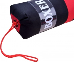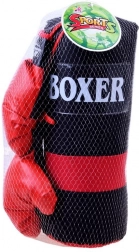 Complete boksset voor thuis trainen en plezier. Bevat 2 bokshandschoenen en een hangende bokszak. Handschoenen van synthetisch leer met klittenbandsluiting zorgen voor een comfortabele en veilige pasvorm. De zak is stevig doorgestikt, opgehangen aan metalen oogjes met koorden. Ideaal voor het ontwikkelen van coördinatie, snelheid en wendbaarheid.