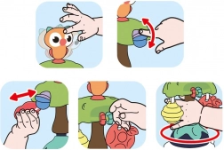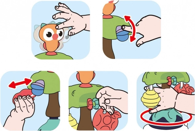 De kleurrijke en beweegbare onderdelen van het speelgoed bevorderen de zintuigelijke en motorische ontwikkeling van kinderen.