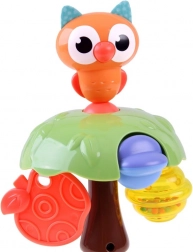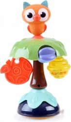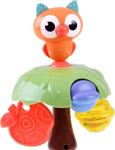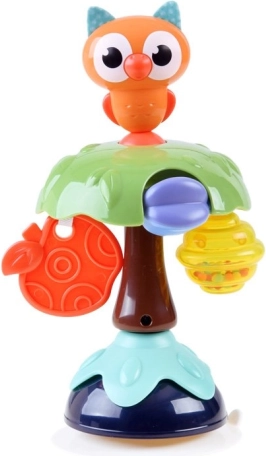De magische rammelaar met uilenmotief is gemaakt van hoogwaardige kunststof en heeft een zuignap die gemakkelijk op gladde oppervlakken kan worden bevestigd, zoals een tafel of stoel. Dit kleurrijke speelgoed is de ideale metgezel tijdens het voeden of bij gewoon spel. De rammelaar laat het kind het speelgoed observeren, draaien en bewegen, wat de zintuigelijke en motorische ontwikkeling ondersteunt.