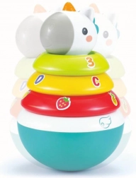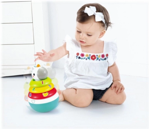 De gevormde basis laat het speelgoed functioneren als een tuimelaar. Bij het schommelen maakt het aangename rammelende geluiden, waardoor kinderen leren over oorzaak en gevolg.