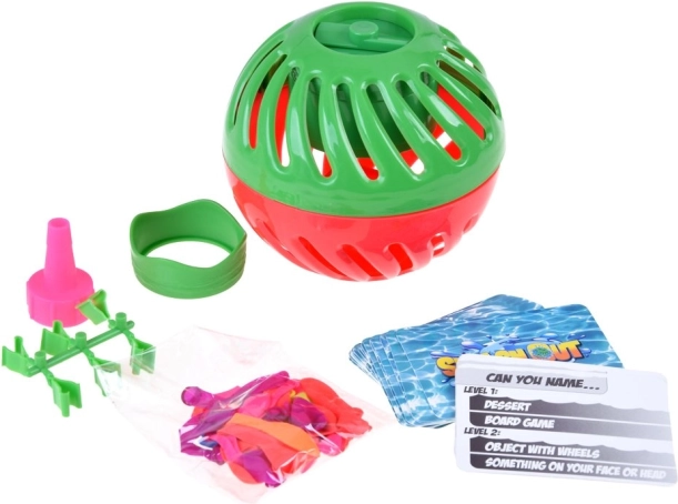 Het spel Splash Out biedt eenvoudige mechanismen en maximaal plezier: vul de ballonnen met water, plaats ze in de tweedelige bal met timer, draai de tijd op en begin te antwoorden. Geef de bal door zolang de tijd loopt – daarna knapt de ballon en wordt iemand nat! De vraagkaarten (in het Engels) prikkelen creativiteit en snel denken.