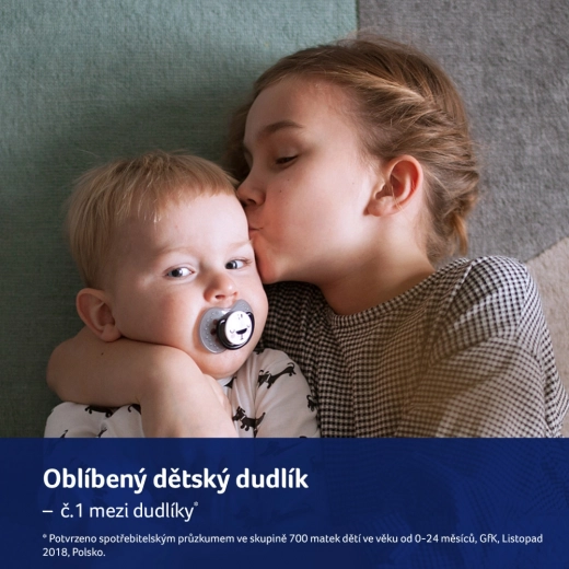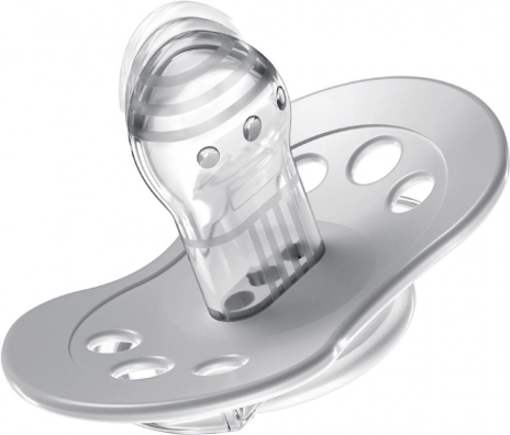 De speen van ongelijksoortige siliconenlagen verlengt en verkort zich volgens het zuigritme, ondersteunt een gezonde ontwikkeling en deformeert het gehemelte niet.