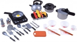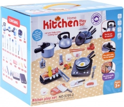 Deze draagbare keukenset is ideaal voor elke kleine kok. Hij biedt een complete uitrusting, waaronder een theepot, kookplaat, snelkookpan en veel andere accessoires die nodig zijn om te koken en te grillen.