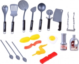 Bij het inschakelen gaat het display aan, dat de temperatuurregeling op het fornuis simuleert. Geluiden en Engelstalige temperatuurmeldingen zorgen voor een realistische indruk. Spelen met de keukenset helpt kinderen de basis van koken en huishoudelijke taken te leren en stimuleert hun creativiteit.