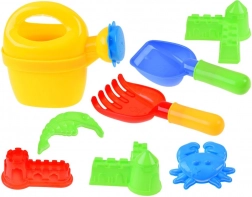 In de set vind je een gieter, hark, schepje en diverse vormpjes. Deze kleurrijke collectie biedt volop mogelijkheden om te bouwen en creëren in de zandbak.