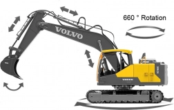 Met de volledig functionerende afstandsbediening kun je de graafmachine soepel vooruit en achteruit besturen, evenals de cabine draaien tot 660°.