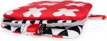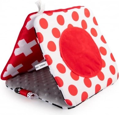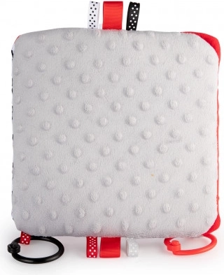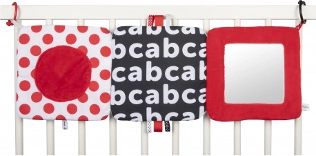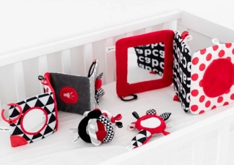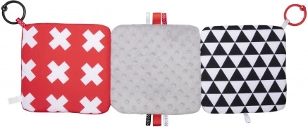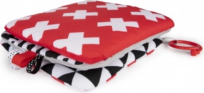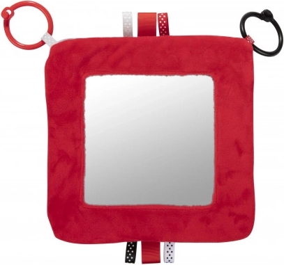 De contrasterende hangspiegel uit de SENSORY-collectie is bedoeld voor de allerkleinsten. Het speeltje kan eenvoudig worden bevestigd op de gewenste plek – kinderwagen, ledikant of autostoel – en kan ook makkelijk worden gevouwen tot een piramide of uitgeklapt tot een boekje. Deze praktische accessoire heeft knisperende en piepende elementen en een spiegeltje. Sensorische kleuren en verschillende materiaaltexturen stimuleren de ontwikkeling van de zintuigen van het kind. Meer informatie over het product in deze video: https://www.youtube.com/watch?v=ODSDyoyN7l0 Waarom zijn sensorische speeltjes zo belangrijk? Het gezichtsvermogen van een kind is na de geboorte het minst ontwikkelde zintuig. De duisternis in de baarmoeder laat niet toe dat het zicht in de prenatale periode volledig ontwikkelt. Na de geboorte is het zicht van de baby wazig en nevelig. Het kind ziet alleen contouren op een afstand van 20–30 cm, grote vormen en elementen uit de omgeving. Na ongeveer een maand begint het kleuren te zien, eerst rood en zwart. Na ongeveer drie maanden merkt het andere opvallende kleuren op. Rond de leeftijd van zes maanden begint het details op afbeeldingen te zien en wordt het zicht veel scherper. In de twaalfde levensmaand is het zicht van het kind volledig ontwikkeld zoals bij een volwassene en wordt het een geweldig hulpmiddel om de wereld te ontdekken. Sensorisch speelgoed uit de nieuwe SENSORY-collectie helpt zo het gezichtsvermogen van het kind te stimuleren en traint het vermogen om zich te concentreren vanaf de eerste levensweken. Over de SENSORY-collectie: De sensorische speelgoedcollectie is ontwikkeld voor kinderen tot één jaar. In deze periode vinden de belangrijkste veranderingen plaats in de psychomotorische ontwikkeling van het kind. Sensorisch speelgoed sluit aan bij de actuele trend op de markt die focust op het ondersteunen van ontwikkeling via spel, waarbij de ouder samen met het kind de visuele ontwikkeling kan stimuleren, het vermogen om de aandacht op een object te richten kan oefenen, objecten met de ogen kan fixeren en volgen, en behendigheid en coördinatie kan trainen. Gebruiksaanwijzing: Houd het speelgoed schoon. Wasinstructies staan op het etiket van het product. Handwas op 30°C met een zeepachtig wasmiddel. Controleer zorgvuldig voor elk gebruik. Gooi het product weg bij de eerste tekenen van beschadiging of slijtage. Verwijder vóór het geven aan kinderen alle verpakkingselementen om verstikking te voorkomen en bewaar ze buiten bereik van kinderen. Bewaar de handleiding voor later gebruik. De partijnummercode staat op de verpakking. Het speelgoed voldoet aan de certificeringen: ISO 9001 en ISO 22716. Het product is ontworpen en goedgekeurd in de EU.