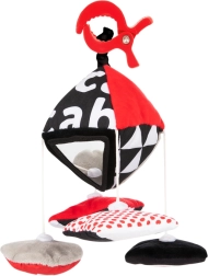 Zwart-witte patronen met rode accenten en twee veilige spiegeltjes trekken van nature de aandacht van de baby en ondersteunen de concentratie.