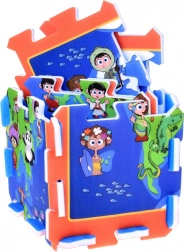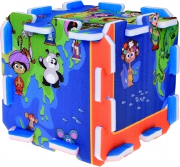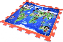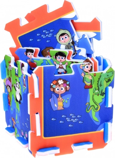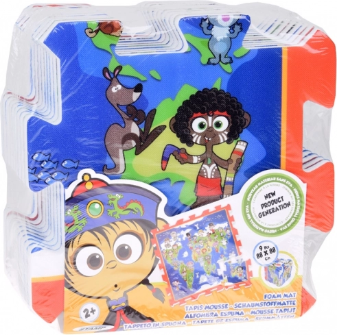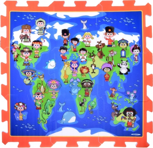 De schuimmat van koppelbare delen biedt een comfortabel, dempend oppervlak voor spel, oefening en ontspanning. Afbeeldingen van kinderen en dieren uit verschillende delen van de wereld motiveren tot ontdekken en leren door te spelen. De delen kunnen eenvoudig worden verbonden tot een vlakke mat of 3D-vormen zoals een kubus of een huisje.