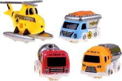 Bevat drie bouwvoertuigen – kiepwagen, betonmixer, tankwagen – en een helikopter. Ook inbegrepen: een bouwvakkersfiguur voor nog realistischer spel.