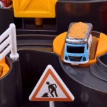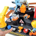 In de doos zitten drie bouwvoertuigen (kiepwagen, betonmixer, tankwagen), een helikopter en een bouwvakkersfiguur. De baan is gemaakt van duurzaam plastic en is na eenvoudig monteren klaar voor uren speelplezier. Ideaal cadeau voor kleine fans van bouwmachines.