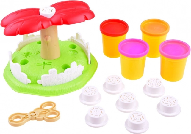 Met de set kunnen kinderen allerlei kleurrijke vormen en bloemen maken met behulp van vier kleuren klei.