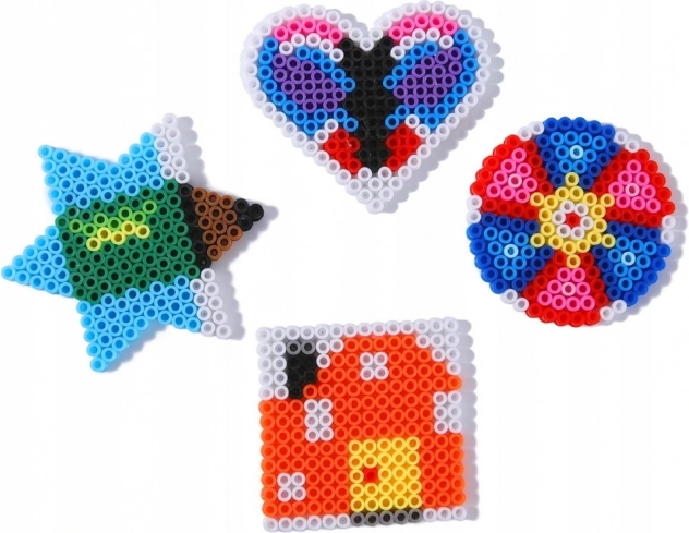 Meerdere zakjes in diverse kleuren en verschillende vormen van pegboards en sjablonen maken het mogelijk om dieren, geometrische patronen en figuurtjes te creëren. De creativiteit kent geen grenzen.