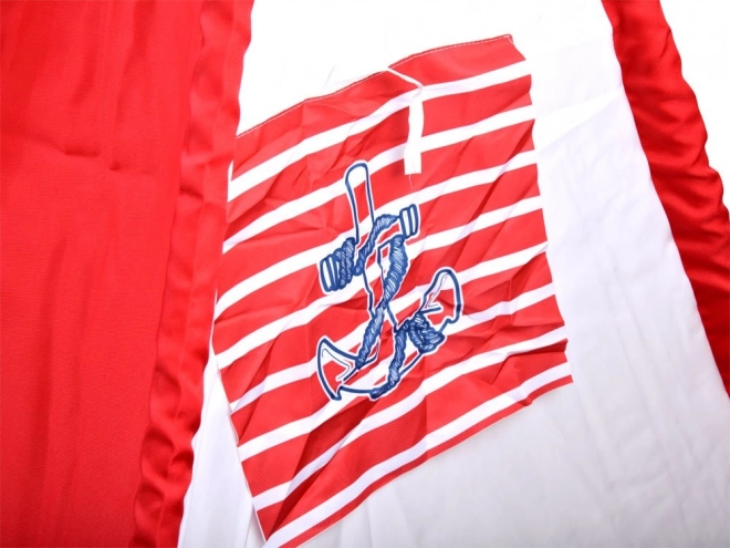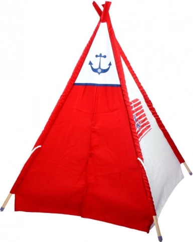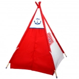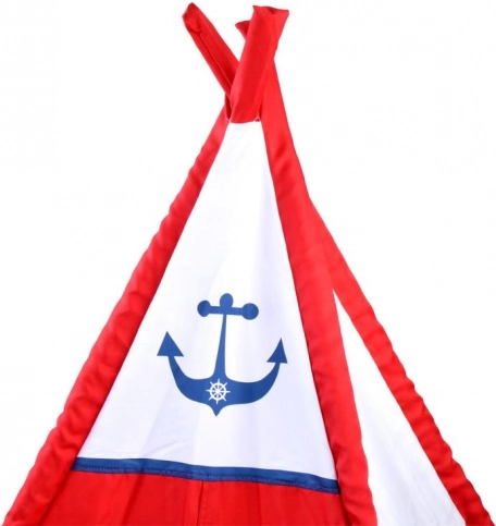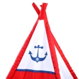 Deze teepee tent heeft een opvallende rood-witte kleurencombinatie met een nautisch ankermotief, wat kinderen een thematische en speelse ruimte biedt.