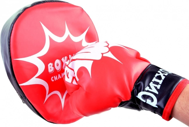 - Twee bokshandschoenen – afmetingen 26 x 16 x 7 cm, die perfect passen op kinderhanden en comfort bij gebruik garanderen.