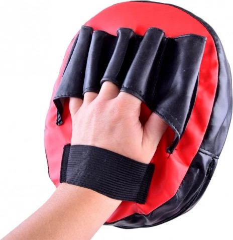 - de ander neemt de stootkussen, met een comfortabele vingergrip en verstelbare klittenbandriem. Het kussen garandeert veiligheid en comfort tijdens de training.