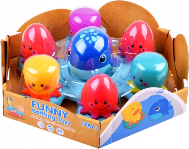 Deze aantrekkelijke badset combineert plezier en leren. Kinderen kunnen zien hoe de walvis drijft, water spuit en hoe de kleurrijke octopusjes blijven drijven op het water of op gladde oppervlakken. De set ontwikkelt oog-handcoördinatie, stimuleert zintuiglijke waarneming en verandert dagelijkse hygiëne in een vrolijk ritueel.