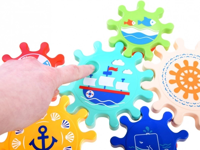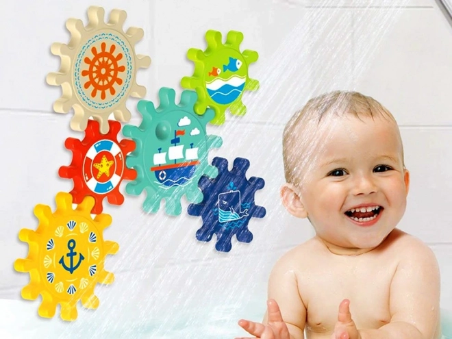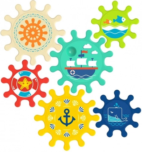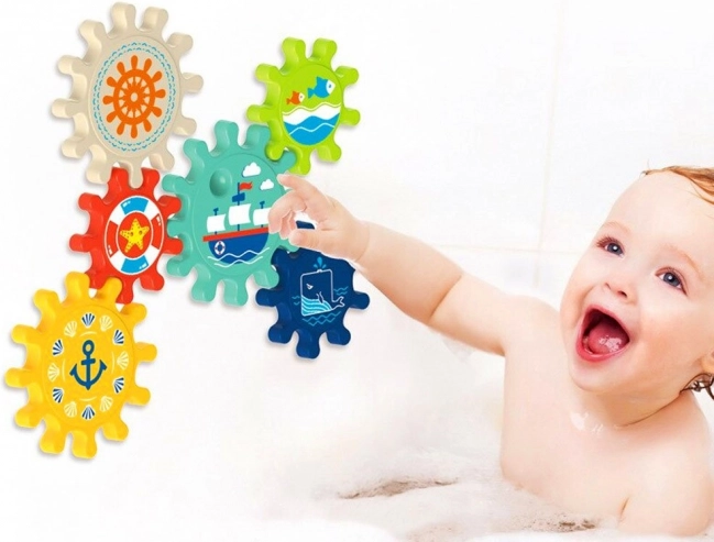 Verrijk badtijd met geweldig plezier met deze set van kleurrijke tandwielen, die eenvoudig aan de wand van het bad of de douche kunnen worden bevestigd. Kinderen houden van het draaien van de tandwielen en het observeren van de beweging van het gehele systeem, wat helpt bij de ontwikkeling van fijne motoriek en logisch denken.