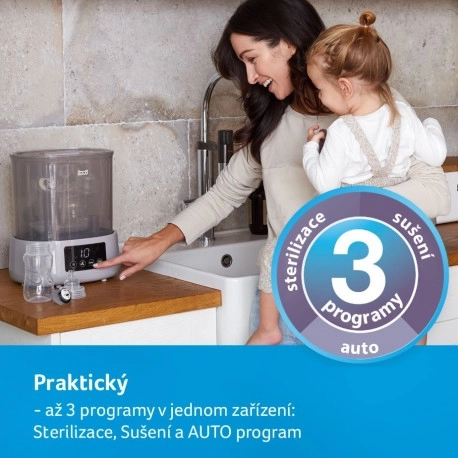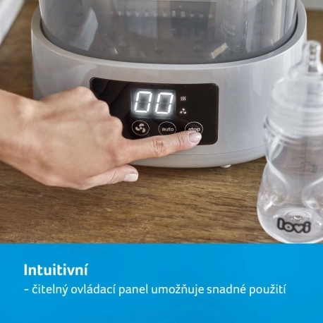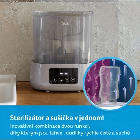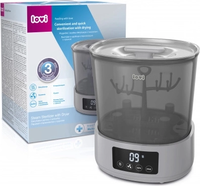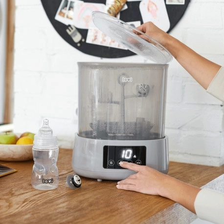 Een snelle, handige en hygiënische manier om voor babyflessen en accessoires te zorgen. De LOVI elektrische sterilisator met droger combineert stoomsterilisatie en efficiënt drogen in één apparaat. Biedt 3 slimme programma’s (Sterilisatie, Drogen, Auto), heeft ruimte voor tot 4 flessen en 10 stuks accessoires en dankzij de automatische uitschakeling is het uiterst veilig en energiezuinig.