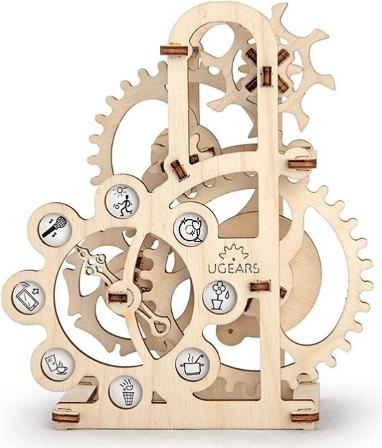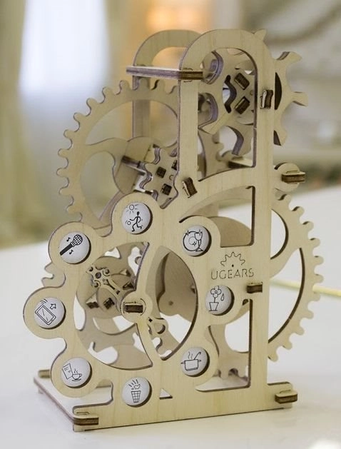 De dynamometer (krachtmeter) van UGEARS is een decoratief én functioneel model dat je interactief kennis laat maken met de basisprincipes van de mechanica. Draai aan het tandwiel of blaas op de schoepen en zie hoe de cascade van overbrengingen de pijl in beweging zet, die stopt bij een pictogram met een opdracht. Een uitstekende keuze voor het ontwikkelen van fijne motoriek, logisch denken en creativiteit.