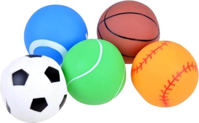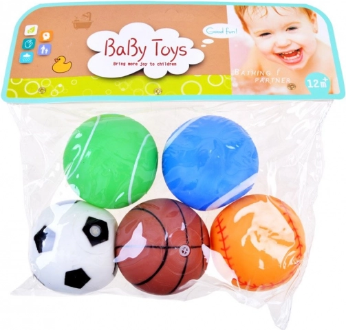 Deze gevarieerde set bevat vijf kleurrijke rubberen ballen geïnspireerd op populaire sporten: voetbal, basketbal, tennis, honkbal en American football. Dankzij de geïntegreerde piepinzet klinkt er bij het indrukken een leuk geluid dat de nieuwsgierigheid prikkelt en de fijne motoriek stimuleert.