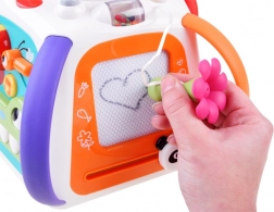 De ingebouwde schrijfbordje met bloemstylus stimuleert de eerste creatieve stapjes. Schuifpanelen creëren een illusie van beweging en een leuke visuele spelervaring.