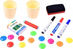 - Magneten, drooguitwisbare stiften met wisser, wisser, gekleurd krijt, krijthouder, bekers, plankje