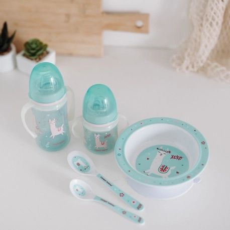 Set voedingslepels uit de populaire EXOTIC ANIMALS-collectie. Gemaakt van melamine, een krasbestendig materiaal. Afgeronde vormen irriteren het gevoelige tandvlees van het kind niet. De lepels hebben kleurrijke prints die voor het kindje een extra stimulans zijn tijdens het eten. De set bestaat uit twee theelepels: een kleine en een grote. Geschikt voor kinderen vanaf 9 maanden. Vaatwasmachinebestendig, BPA-vrij. Gemaakt van melamine – krasbestendig. Afgeronde vorm – irriteert het gevoelige tandvlees van het kind niet. De kleinere lepel is perfect bij het uitbreiden van het voedingsschema van het kind, de grotere bij het aanleren van zelfstandig eten. Gebruiksaanwijzing: Houd schoon. Was voor het eerste en elk volgend gebruik in warm water met een mild afwasmiddel. Grondig naspoelen met heet water. Niet uitkoken. Niet gebruiken in de magnetron. Waarschuwing! Belangrijk voor de gezondheid en veiligheid van uw kind! Alleen gebruiken onder direct toezicht van een volwassene. Controleer het product vóór elk gebruik. Gebruik het product niet meer bij de eerste tekenen van slijtage of beschadiging – vervang het door een nieuw exemplaar. Controleer altijd de temperatuur van het aan het kind gegeven voedsel. Waarschuwing! Dit product is geen speelgoed. Buiten bereik van kinderen houden. De lepels voldoen aan de eisen van: Verordening (EG) nr. 1935/2004 van het Europees Parlement en de Raad – algemene eisen voor materialen en voorwerpen bestemd om met levensmiddelen in aanraking te komen; Verordening (EU) nr. 10/2011 van de Commissie betreffende materialen en voorwerpen van kunststof bestemd om met levensmiddelen in aanraking te komen; EN 14372 Kinderverzorgingsproducten – Bestek en servies voor voeden – Veiligheidseisen en beproevingsmethoden