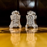 De Magische klok van Wooden City is niet alleen een mechanisch model, maar ook een kunstwerk. Deze 3D-puzzel laat je niet alleen bouwen, maar ook genieten van de fascinerende beweging van het klokmechanisme, dat werkt dankzij een slinger en tandwielen. Met twee wijzerplaten – één voor uren en één voor minuten – kun je het verstrijken van de tijd volgen in een betoverende sfeer.