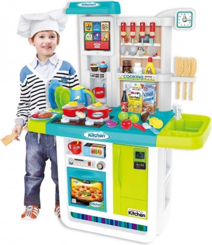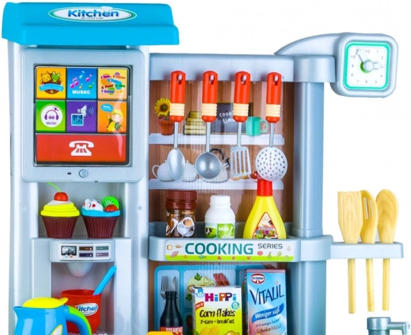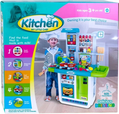 Deze interactieve keuken is een geweldig cadeau voor kleine koks. Kinderen zullen dol zijn op koken op de 2 kookpitten met licht en geluid, bakken in de oven en voedsel opbergen in de koelkast. De gootsteen met kraan en stromend water en het touchpanel met melodieën en geluiden zorgen voor urenlang speelplezier.