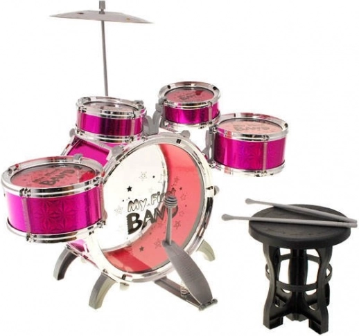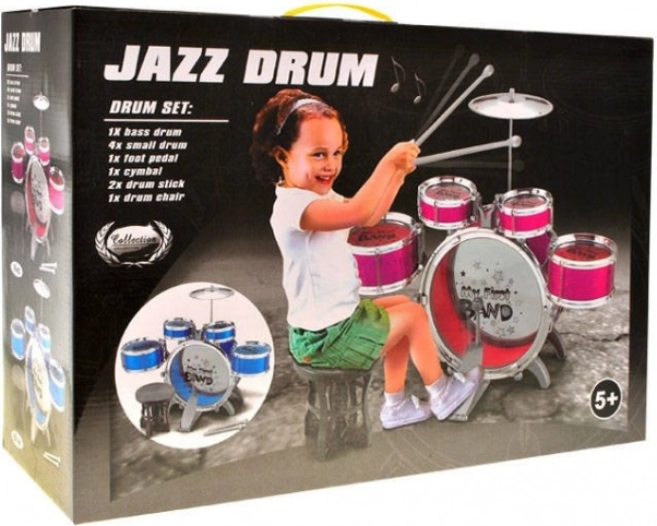 Deze aantrekkelijke kinderdrumset bevat 5 trommels, een bekken, een pedaal voor de basdrum, een kruk en drumstokken – alles wat een jonge drummer nodig heeft voor zijn of haar eerste “concert”. Dankzij de lichte constructie en veilige kunststoffen is de set geschikt voor beginners en eenvoudig te verplaatsen en op te bergen.