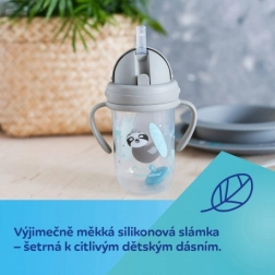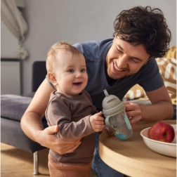 Ergonomische brede handgrepen maken vasthouden voor kleine kinderen gemakkelijker. De beker is geschikt vanaf 6 maanden, gemaakt van veilige BPA-vrije materialen en compatibel met vervangende rietjes voor eenvoudig onderhoud.