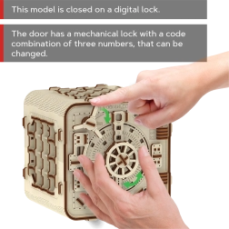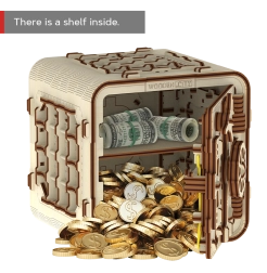 Ontdek de unieke 3D-puzzelkluis van Wooden City, die je zal vermaken en je interieur prachtig zal verfraaien. Stel je eigen numerieke code in en geniet van leuke details en interessante functies.