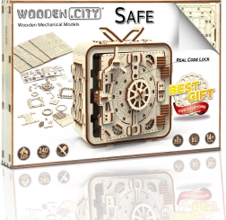 Geniet van het bouwen van een functionerende kluis zonder lijm of gereedschap! Wooden City-modellen zijn gemaakt van ecologische houten materialen en bieden urenlang plezier. Maak van dichtbij kennis met tandwielen, elastiekmotoren, tandraderen en andere onderdelen.