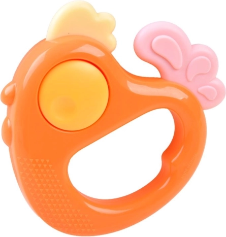 De set bevat vijf verschillende bijtringen: een leeuw, kuiken, muis, pelikaan en egel.