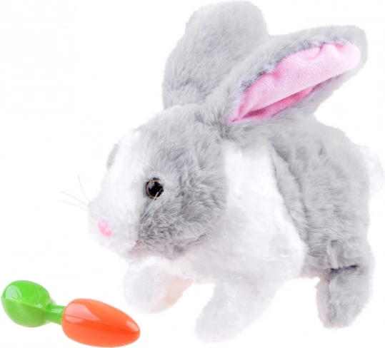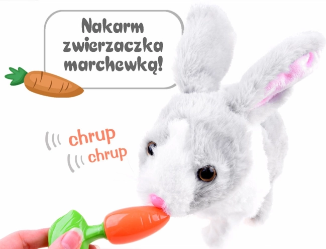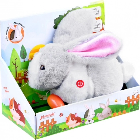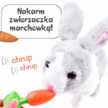 In de verpakking zit een wortel. Wanneer je die bij het snoetje houdt, maakt het konijntje realistische knaaggeluiden – ideaal voor voerspelletjes.