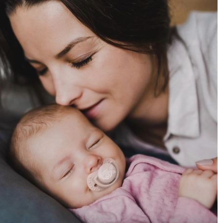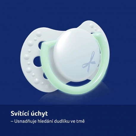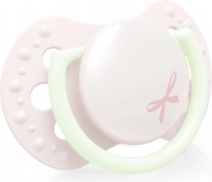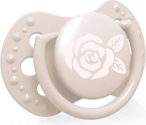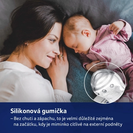 Gemaakt van lagen siliconen voor flexibiliteit volgens het zuigritme van de baby. De symmetrische vorm doet denken aan de tepel van de moeder en maakt gemakkelijk inbrengen in de mond mogelijk.