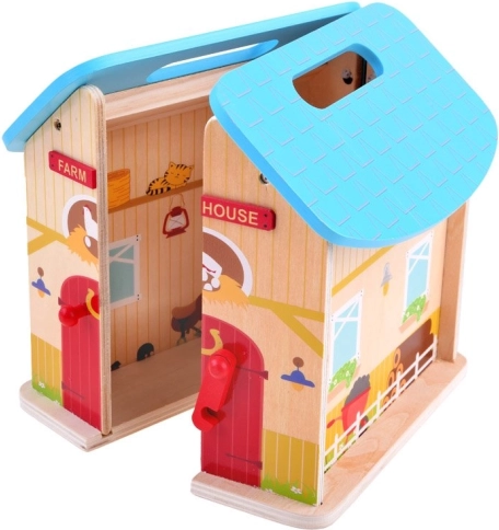 Houten boerderij voor kinderen kan het begin zijn van een groot avontuur. De verbeeldingskracht en creativiteit van kinderen kennen geen grenzen. Na het spelen kan het huisje worden gesloten, wat opslag, transport vergemakkelijkt en de veiligheid van de figuren binnenin garandeert. Dit speelgoed stimuleert creatieve tijdsbesteding, bevordert de verbeelding en helpt bij het ontwikkelen van vele andere vaardigheden.